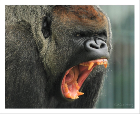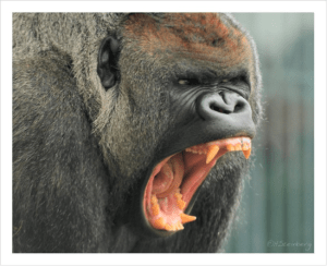 The Mountain Gorilla has canines that those True Blood vampires would kill for, yet they live almost entirely on a diet of leaves and roots…with an occasional grub thrown in for seasoning.